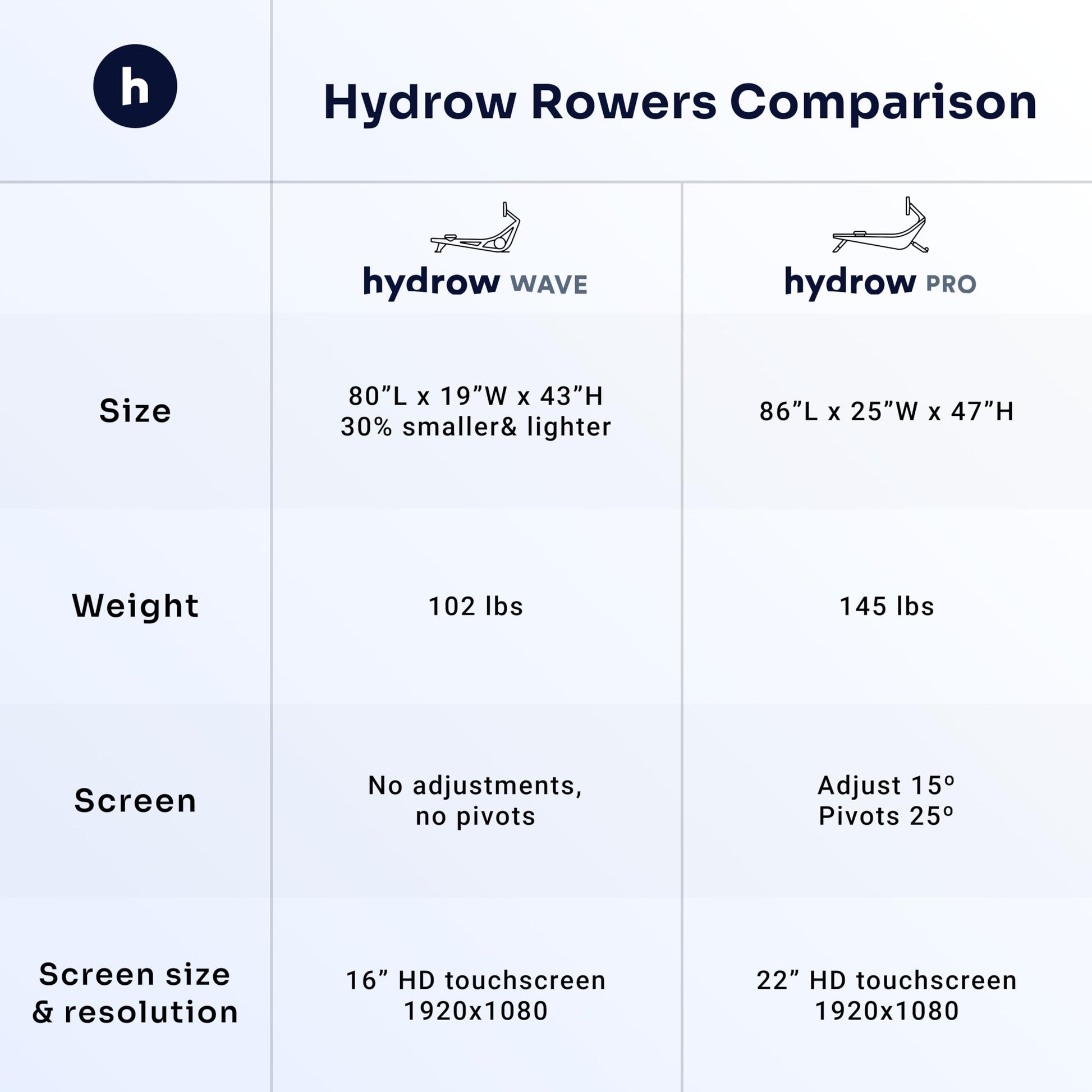 - ESCAPE INTO IMMERSIVE WORKOUTS. Featuring a crystal-clear 22” HD rotating touchscreen display with front-facing speakers, rowing on the Hydrow Pro rower is sure to take you places. Even better – the rower itself is designed to make indoor rowing feel like on-the-water rowing, thanks to our proprietary electromagnetic drag technology. Features include padded seat, adjustable foot straps, and a low-stress grip handle.
