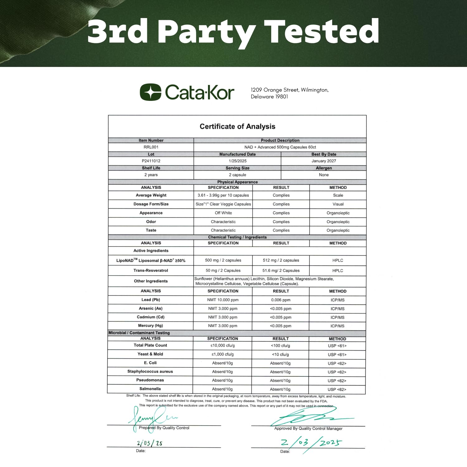 - TESTED IN THE USA: Our NAD, Resveratrol supplement is third-party tested in the USA to ensure its purity and effectiveness. Certificate available upon request. Get back to feeling your best with NAD+ supplement booster.
