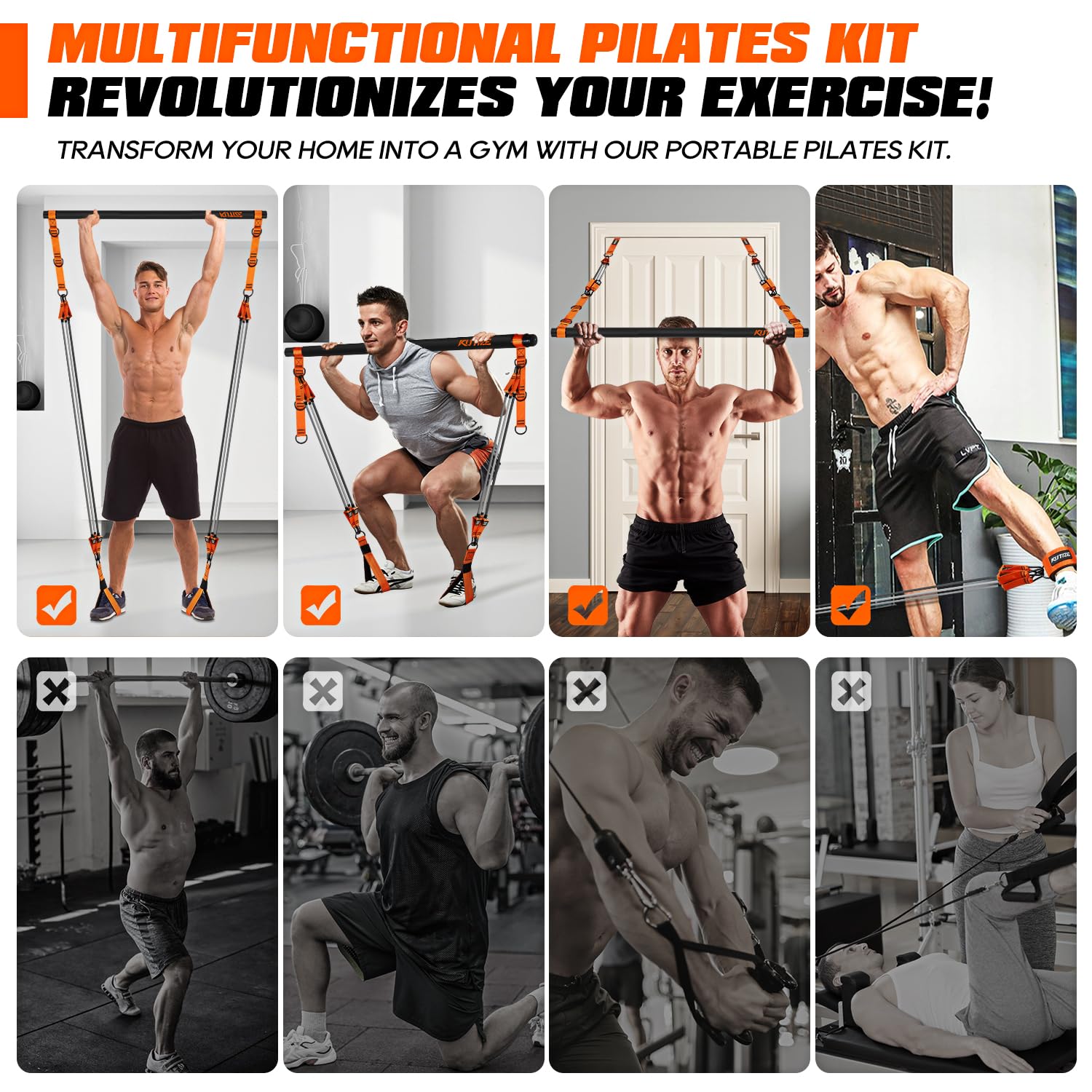 Pilates Bar Kit with Resistance Bands, Heavy Duty Pilates Equipment for Men